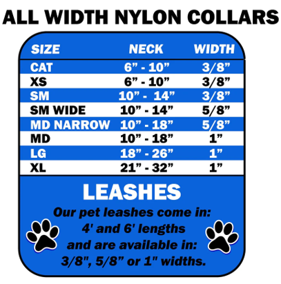 Make your pet the talk of the neighborhood with our fashionable and durable "Rainbow Leopard" nylon collar and leash. Crafted from military-grade nylon with a high-quality ribbon stitched on top, these collars are both stylish and sturdy. Be sure to check our sizing chart in the photos to find the perfect fit for your furry friend. Our cat collar features a special breakaway buckle to ensure your cat's safety if they become entangled while wearing it. For dogs, we offer high-quality adjustable quick-release buckles in a variety of neck sizes. Our pet leashes come in 4' and 6' lengths and are available in 3/8", 5/8", or 1" widths. Plus, all of our collars and leashes are washable, making it easy to keep them clean and fresh. Please note that these products are not intended for tie-out purposes. Trust our "Rainbow Leopard" nylon collar and leash to keep your pet safe, stylish, and comfortable.